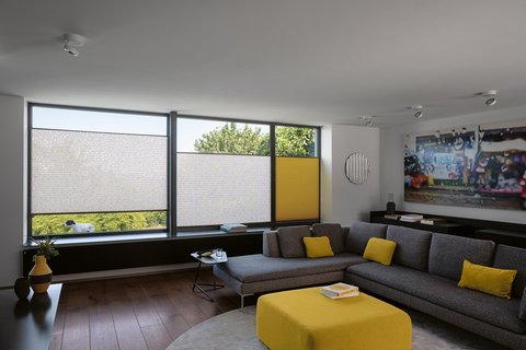 Ein farbenfrohes Faltbild kombiniert mit einem Sonnen- und Sichtschutz – Plissees passen an jedes Fenster.